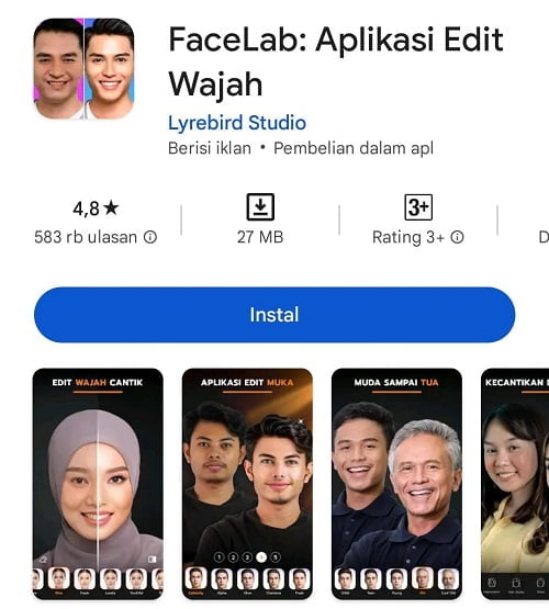 - Nama aplikasi: FaceLab: Aplikasi Edit Foto
